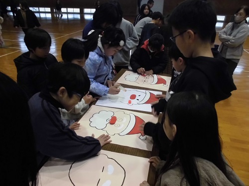 最後に、できあがったサンタの顔と一緒に縦割り班ごとに記念撮影をして終わりました。