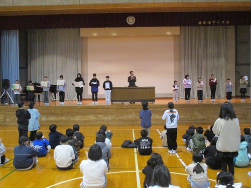 12月24日(水)は2学期の終業式でした。終業式では、各学年の代表児童が2学期がんばったことを立派に発表しました。また、各種表彰も行いました。